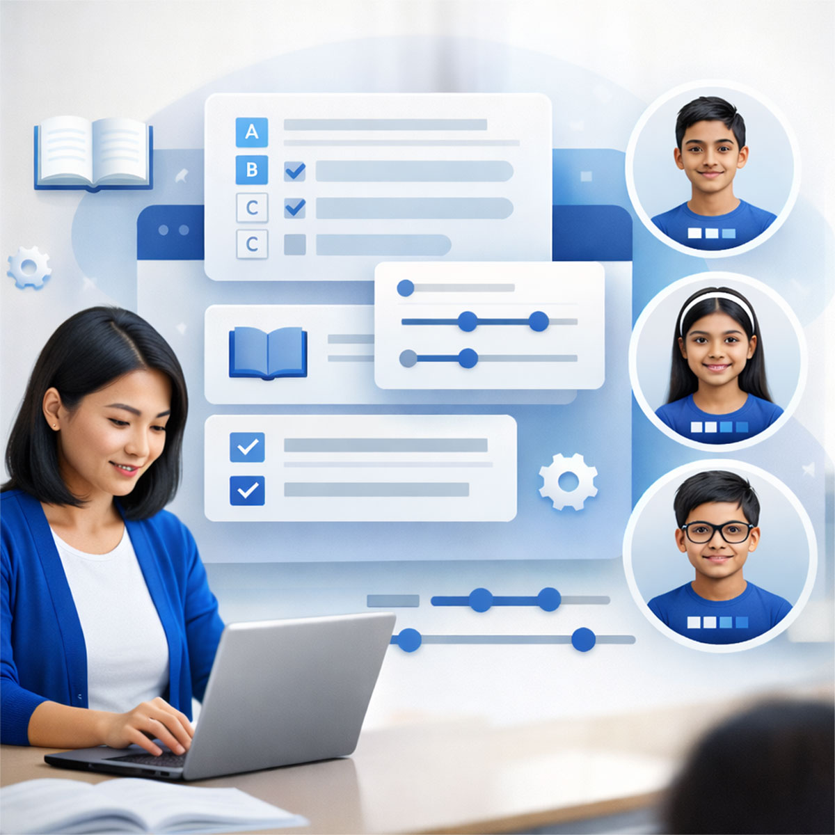 Nothing can replace the wisdom gained from years of teaching diverse class groups. With the AI generated content as the base, the teacher has the flexibility to adapt, modify learning resources and teaching aids. The platform enables creation of a library with own content, upload resources as required.